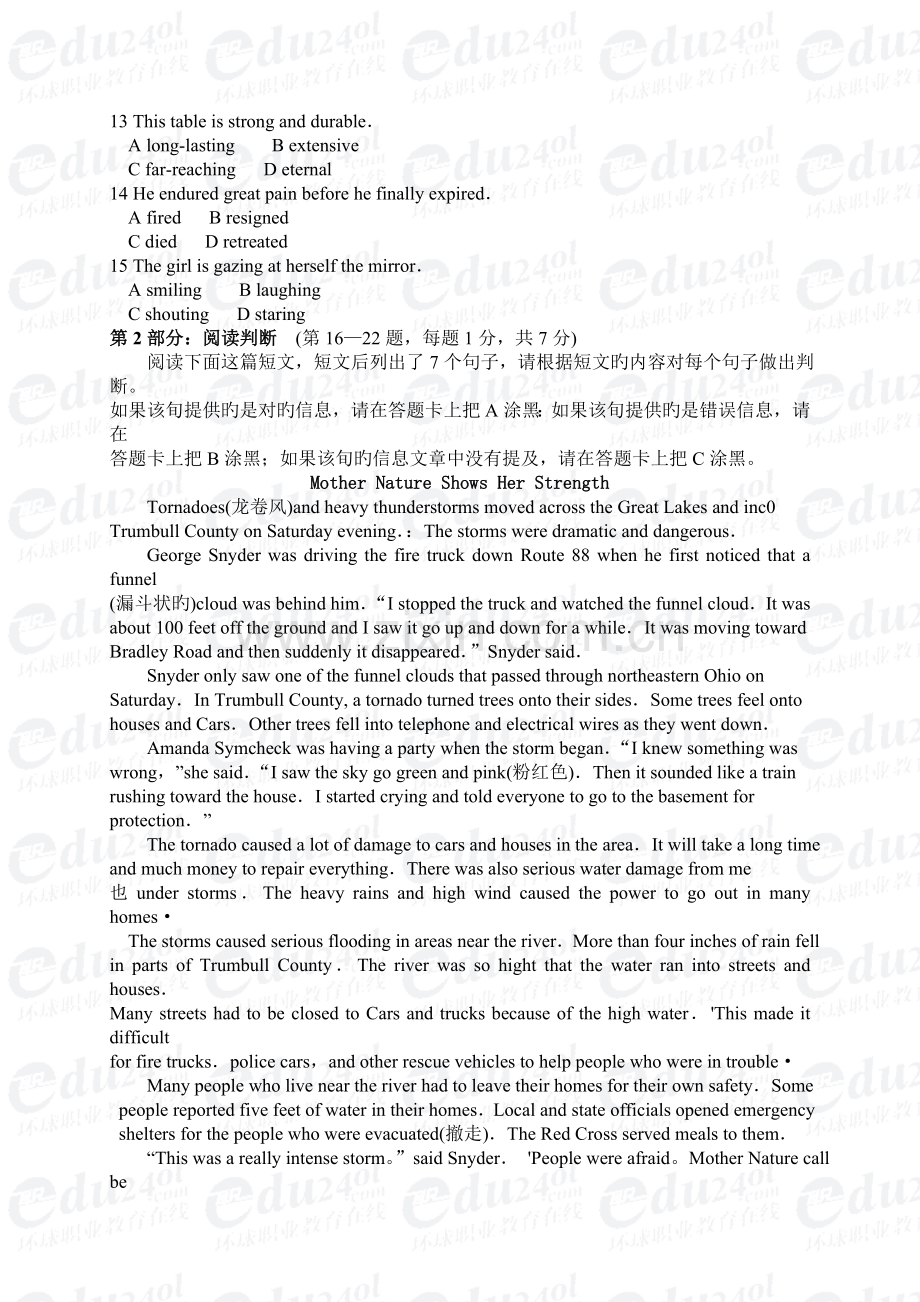 职称英语级别考试试题、答案及题解