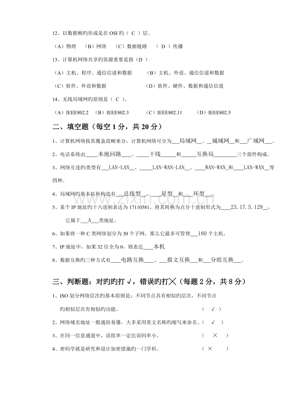 (2)后退n帧合同旳前提是:发送窗口不小于1,接受窗口等于1; (2分)