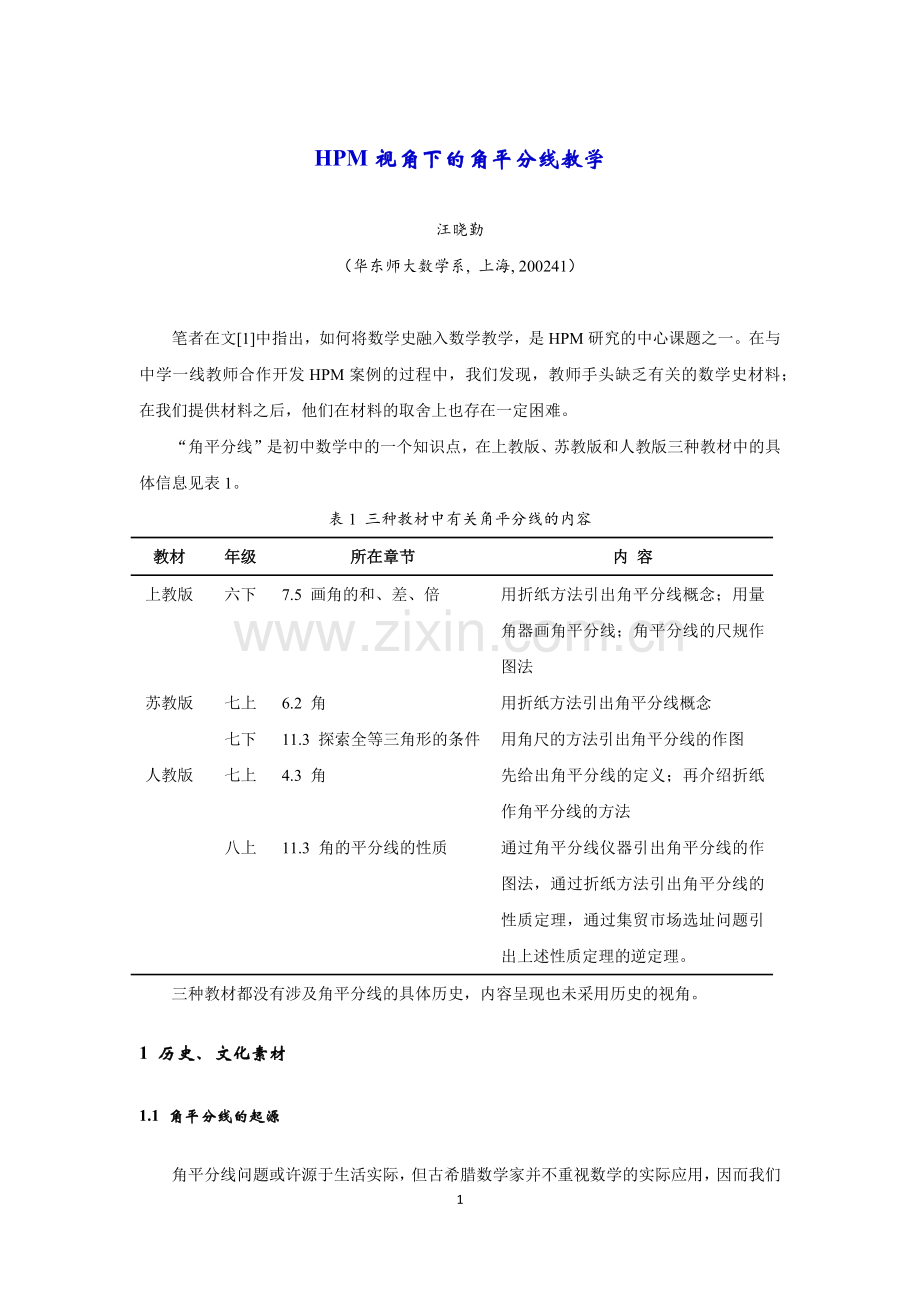 “角平分线”是初中数学中的一个知识点,在上教版、苏教版和人教版三种教材中的具体信息见表1。