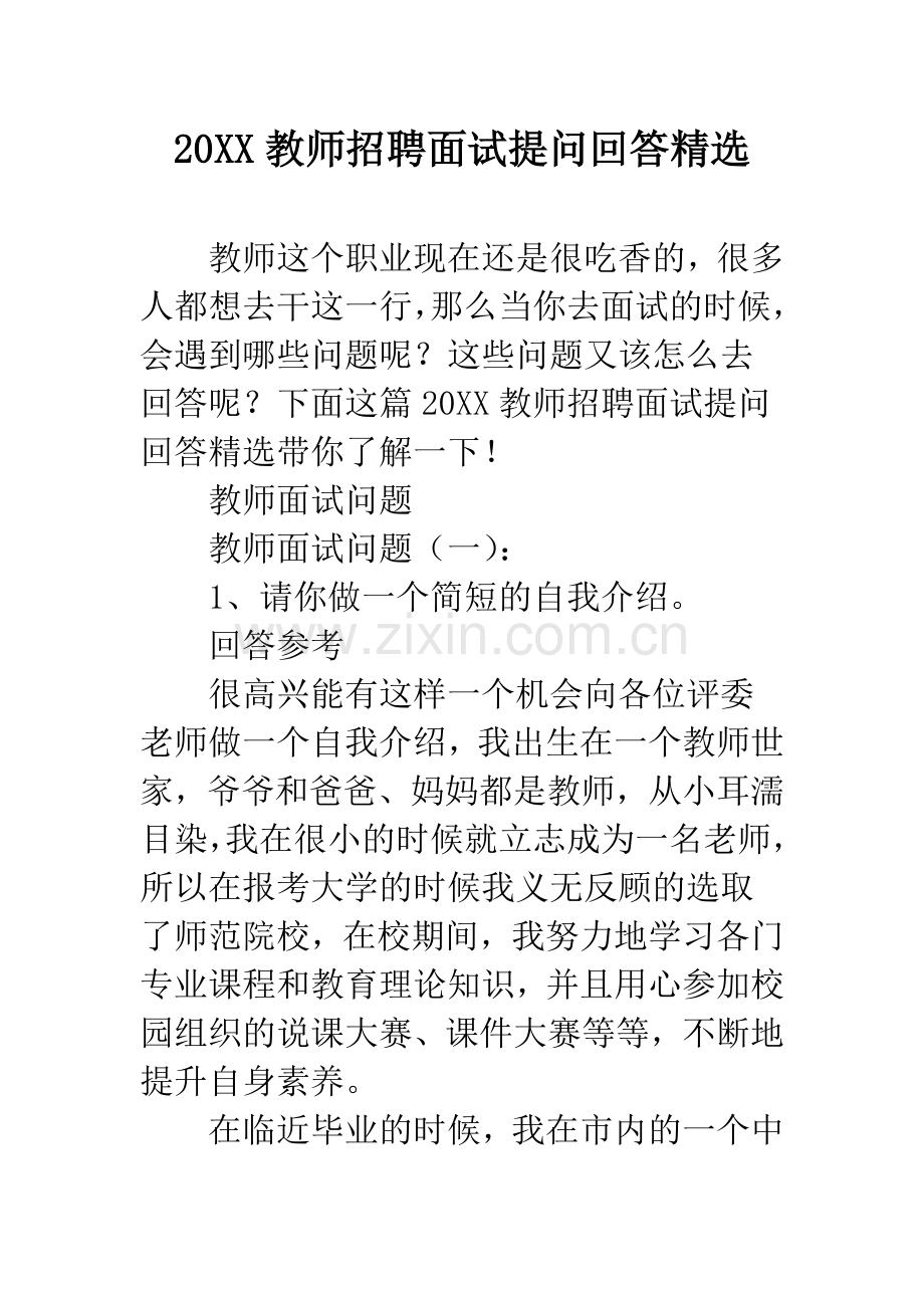 教师这个职业现在还是很吃香的,很多人都想去干这一行,那么当你去面试的时候,会遇到哪些问题呢?这些问题又该怎么去回答呢?下面这篇20XX教师招聘面试提问回答精选带你了解一下!