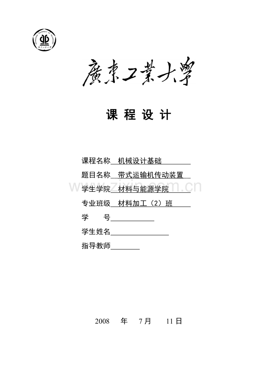 设计一带式运输机传动装置(见 图1)。设计内容应包括:传动装置的总体设计;传动零件、轴、轴承、联轴器等的设计计算和选择;减速器装配图和零件工作图设计;设计计算说明书的编写。