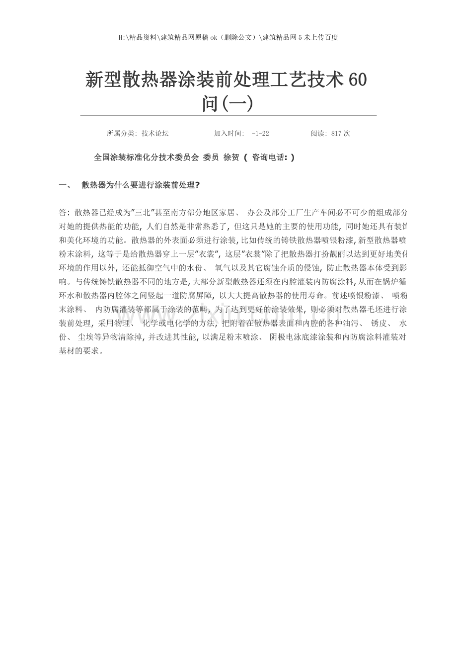 答: 自新型散热器面世以来, 钢制散热器的涂装前处理工艺经历了由简单到规范的过程, 大致上能够分为以下四个阶段: