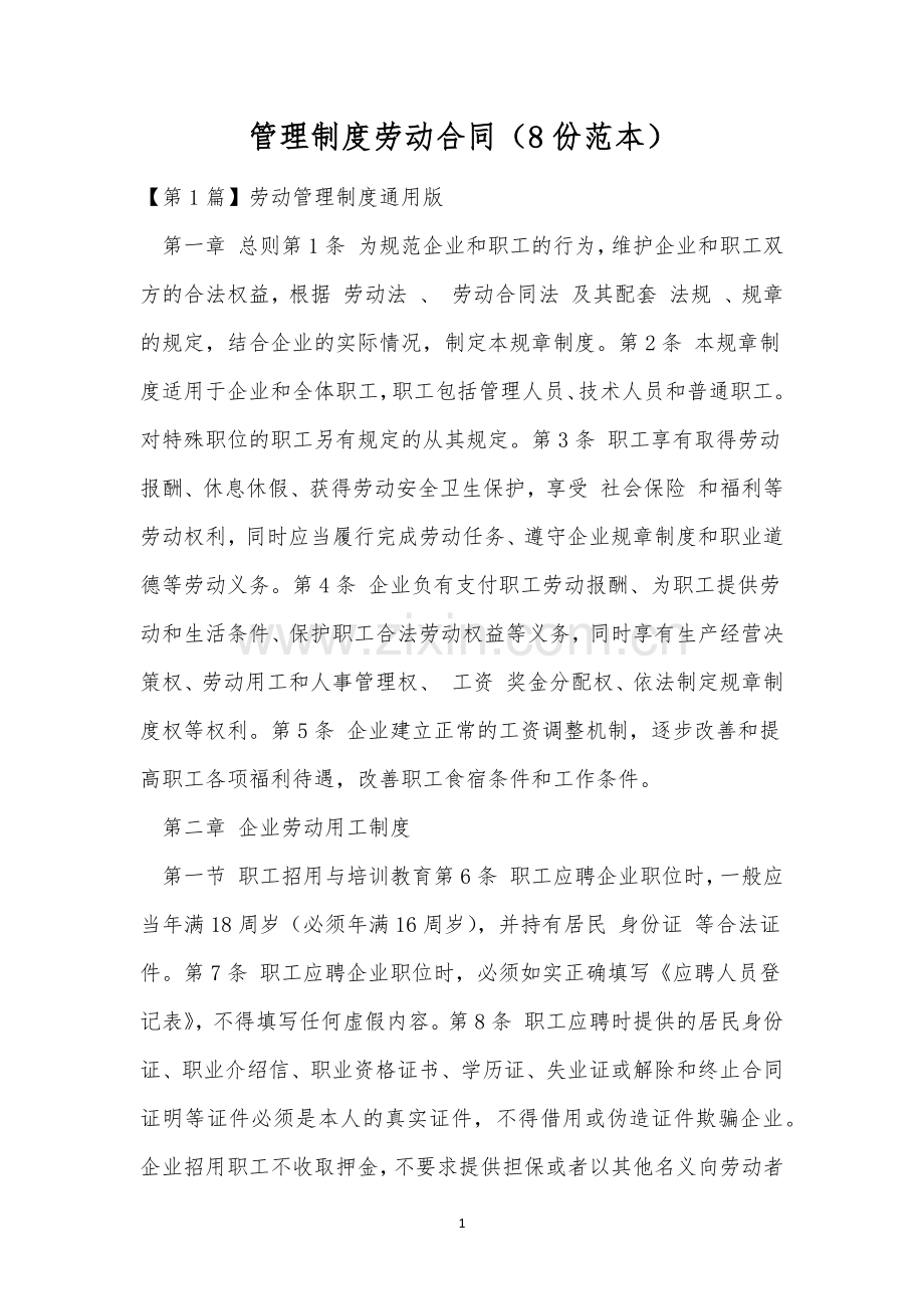 管理制度劳动合同(8份范本)