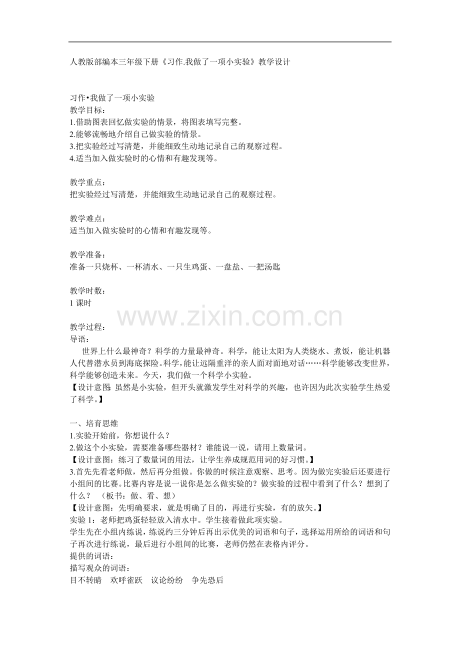 人教版部编本三年级下册《习作.我做了一项小实验》教学设计