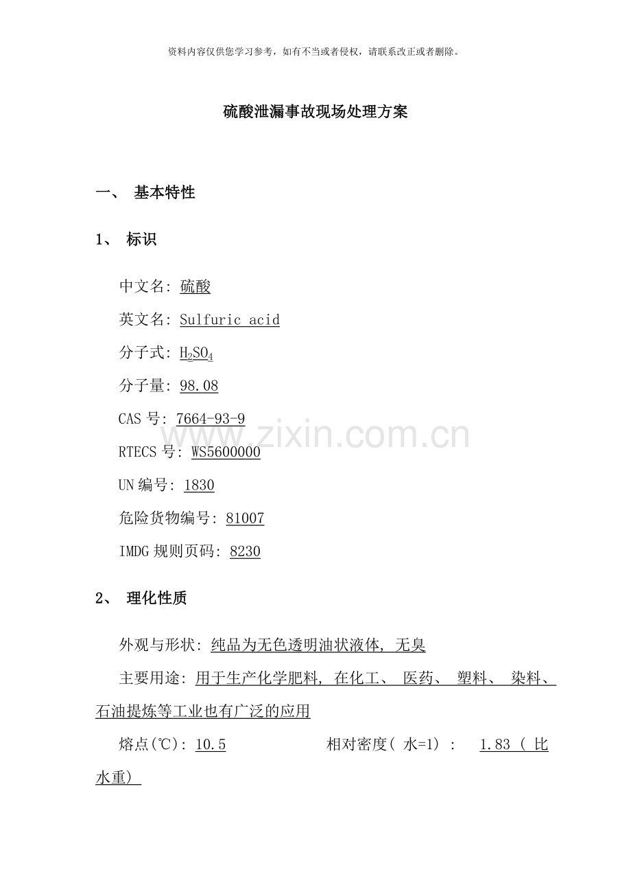 硫酸泄漏事故现场处理方案