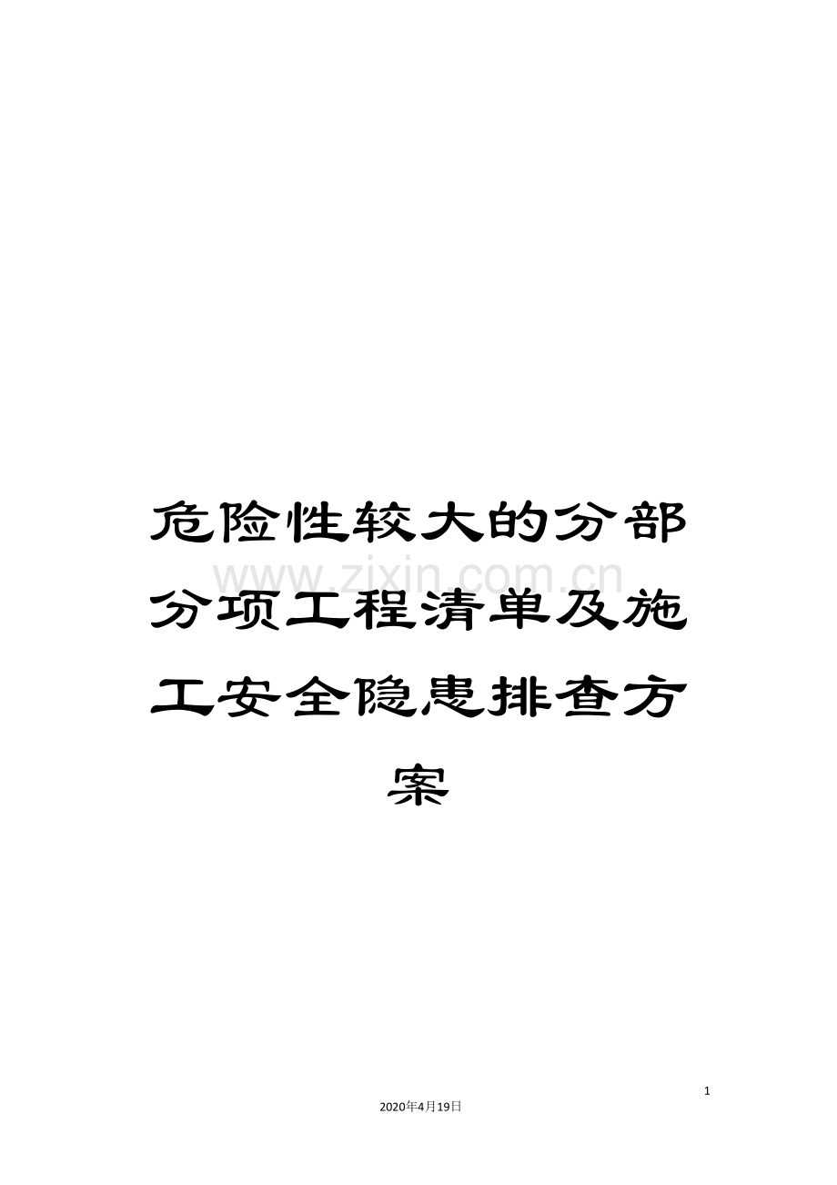 危险性较大的分部分项工程清单及施工安全隐患排查方案
