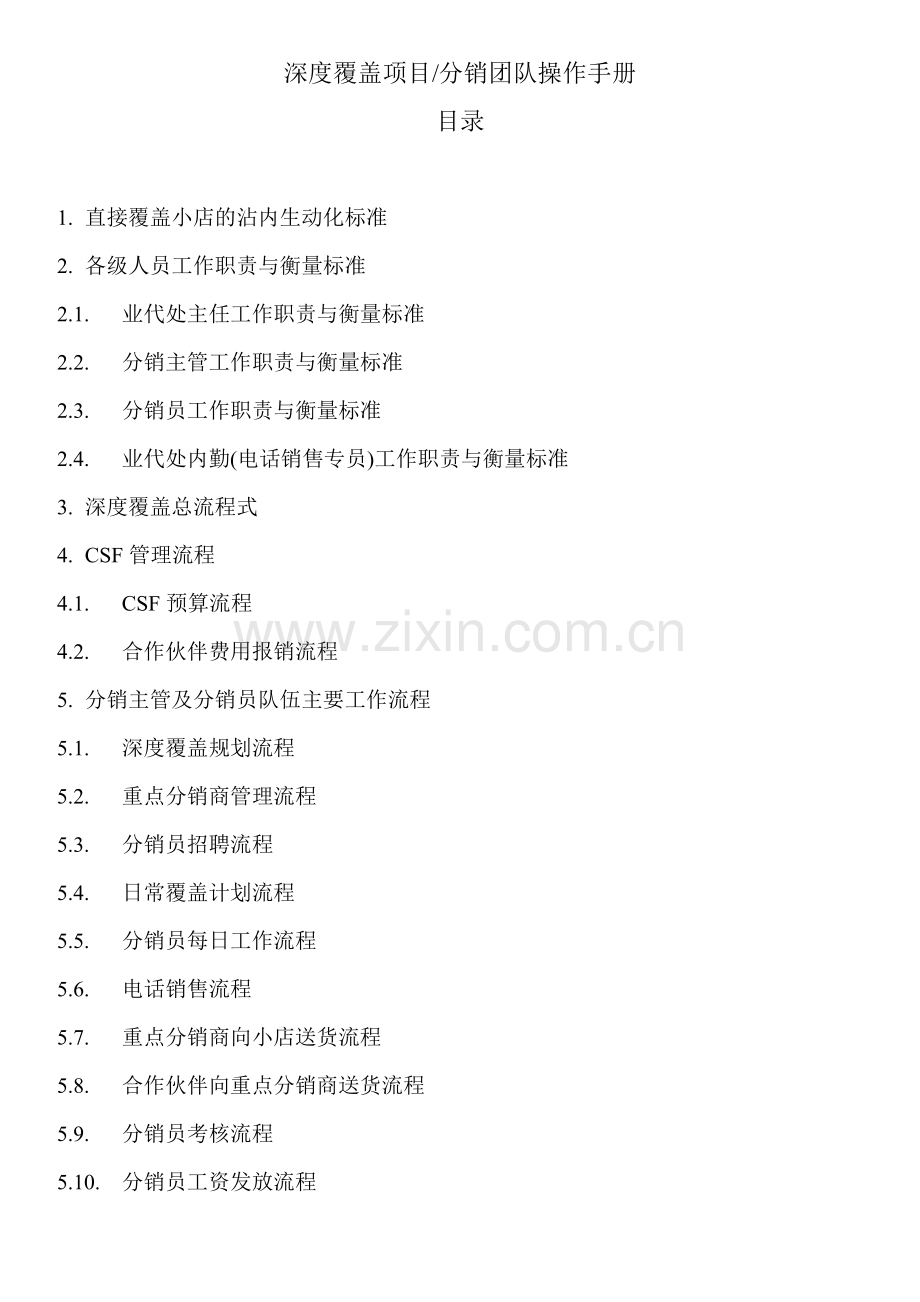 1. 分销商覆盖率=由片区业代日常维护的分销商数÷经营饮料产品的批发商总数