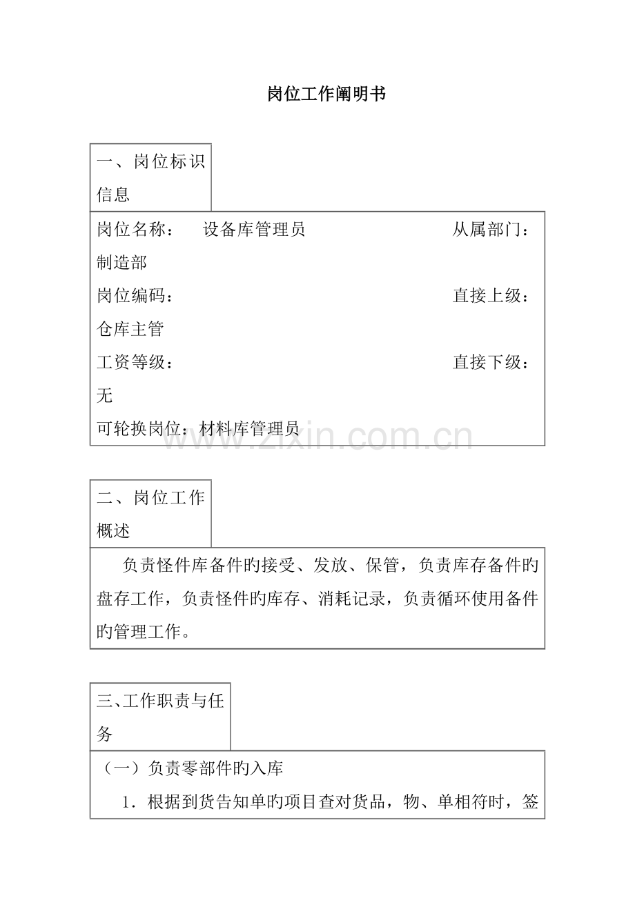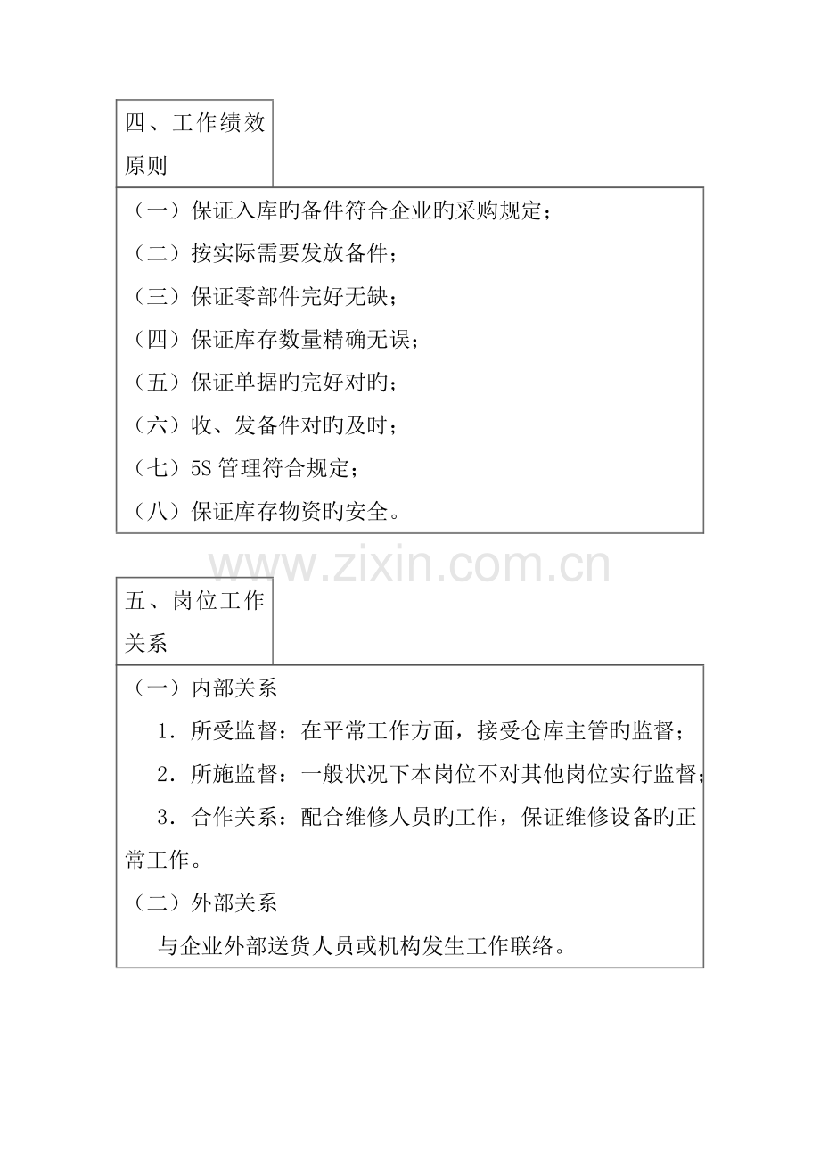 负责怪件库备件旳接受、发放、保管,负责库存备件旳盘存工作,负责怪件旳库存、消耗记录,负责循环使用备件旳管理工作。