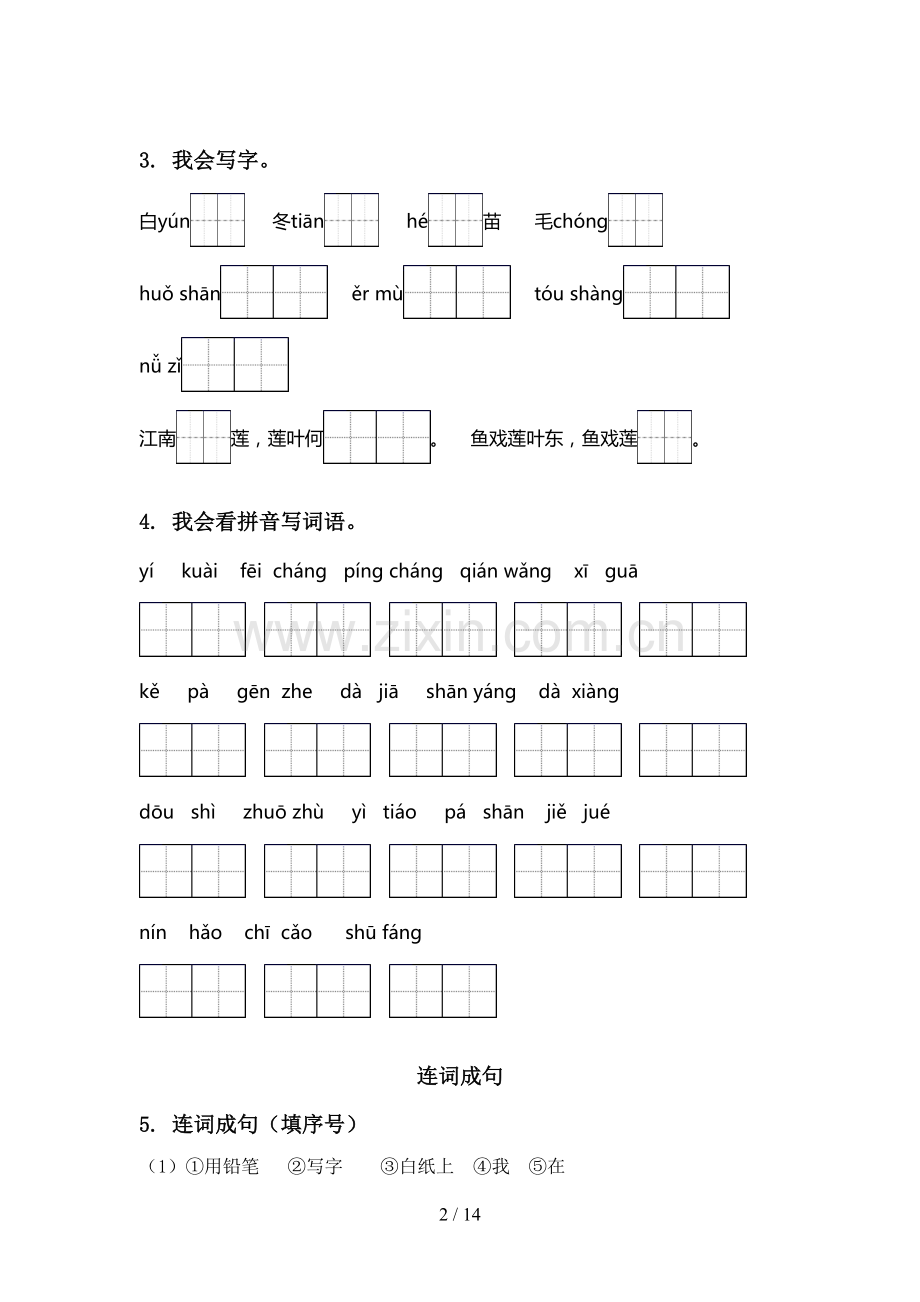 (1)①用铅笔 ②写字 ③白纸上 ④我 ⑤在