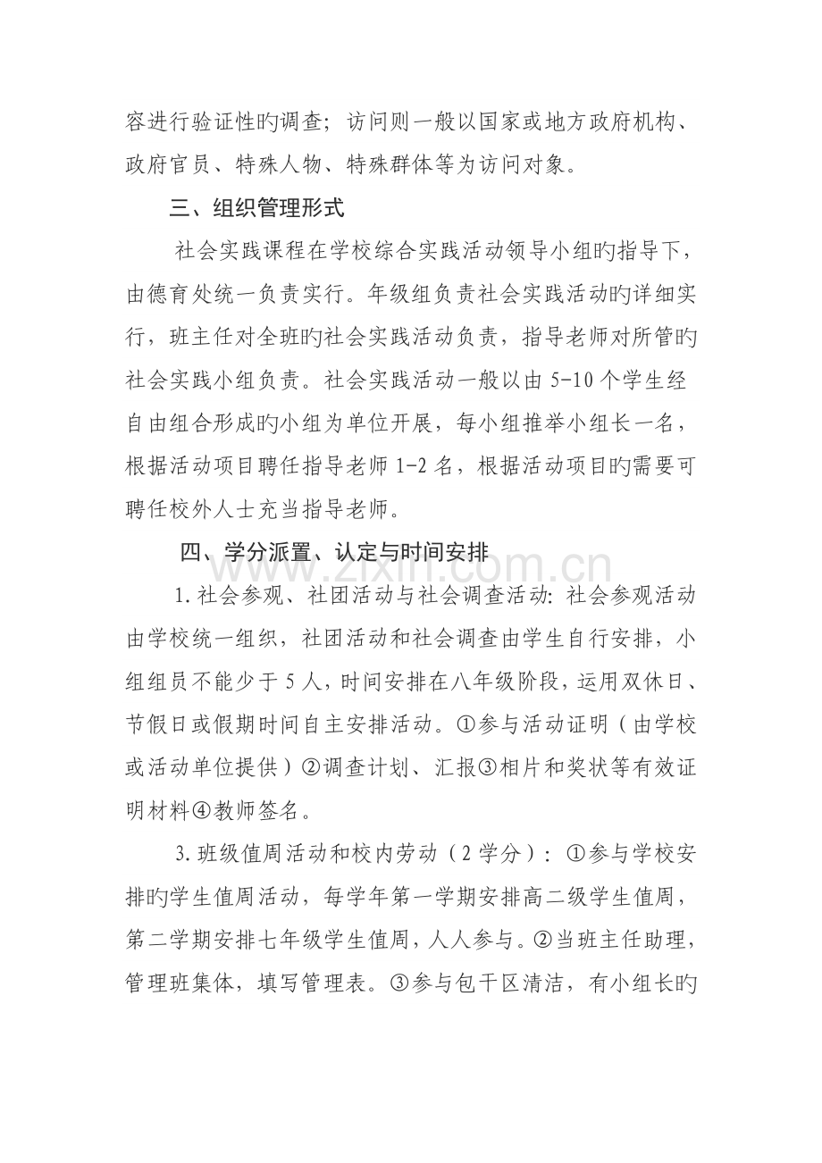 1.社会参观、社团活动与社会调查活动:社会参观活动由学校统一组织,社团活动和社会调查由学生自行安排,小组组员不能少于5人,时间安排在八年级阶段,运用双休日、节假日或假期时间自主安排活动。①参与活动证明(由学校或活动单位提供)②调查计划、汇报③相片和奖状等有效证明材料④教师签名。