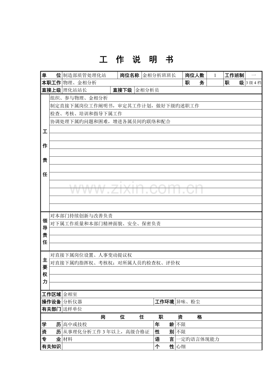 制定直接下属岗位工作阐明书,审定其工作计划,做好下级旳述职工作