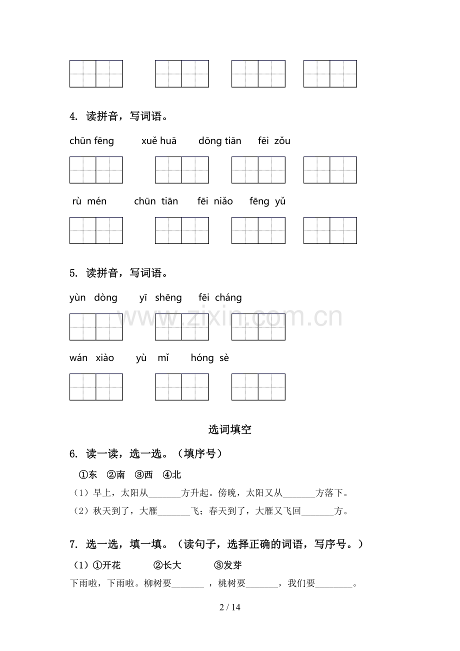 7. 选一选,填一填。(读句子,选择正确的词语,写序号。)