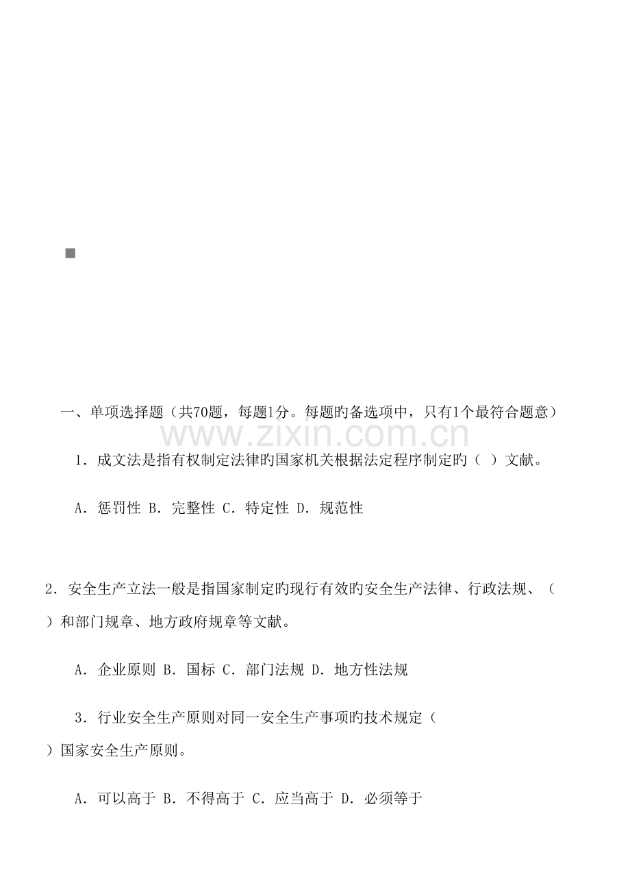 一、单项选择题(共70题,每题l分。每题旳备选项中,只有l个最符合题意)