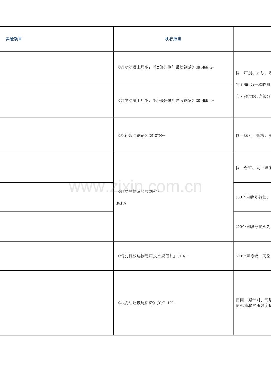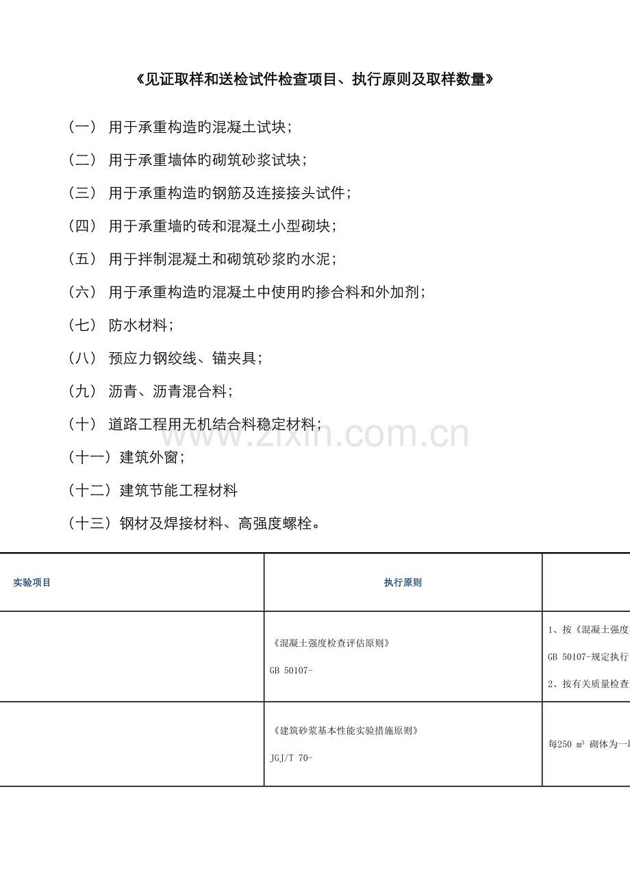 《见证取样和送检试件检查项目、执行原则及取样数量》