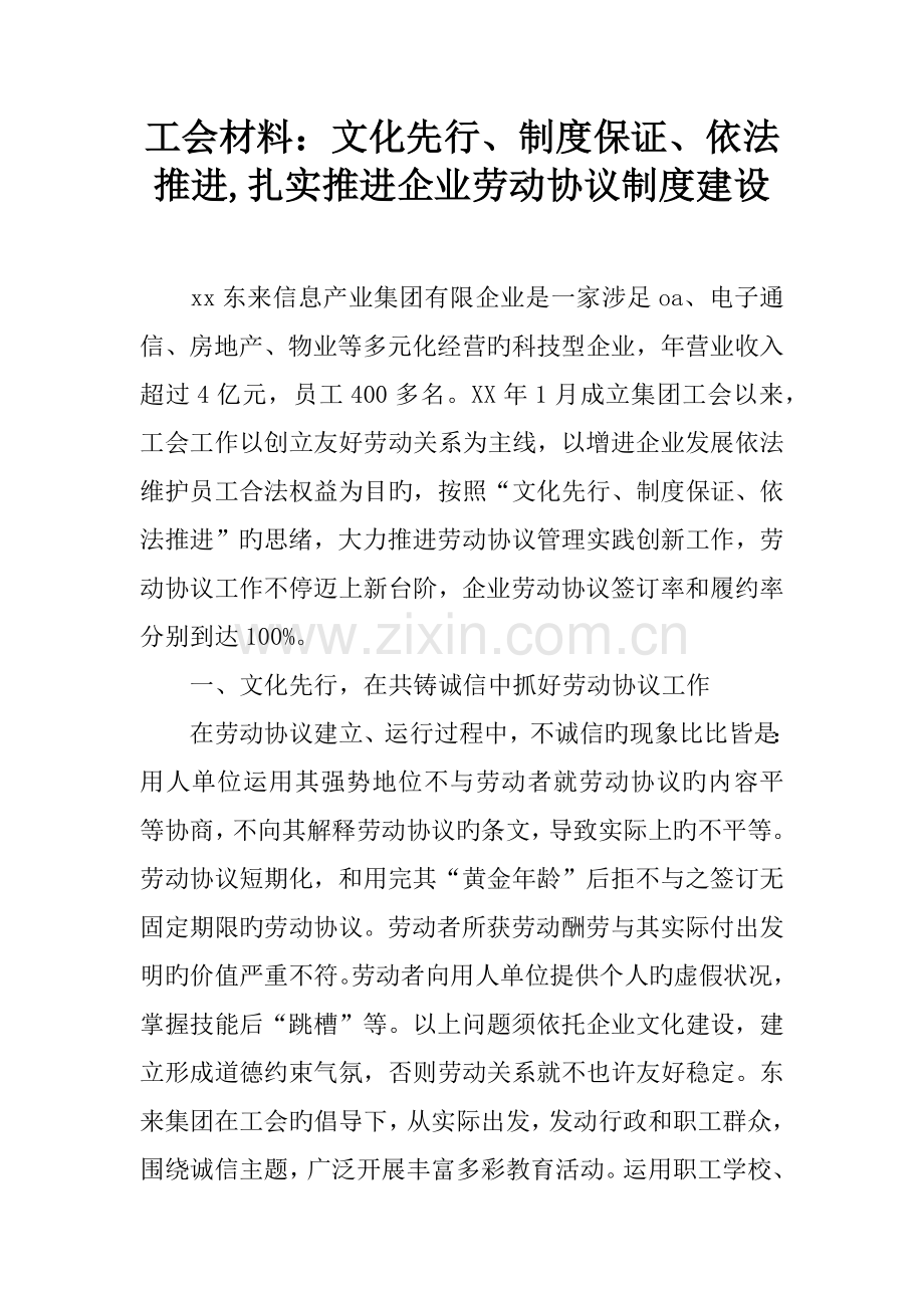 工会材料:文化先行、制度保证、依法推进,扎实推进企业劳动协议制度建设