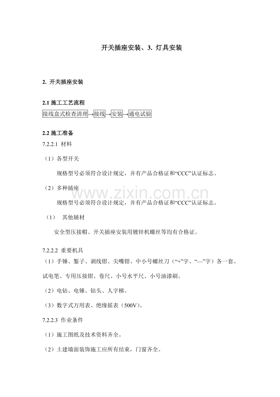 开关插座安装、3. 灯具安装