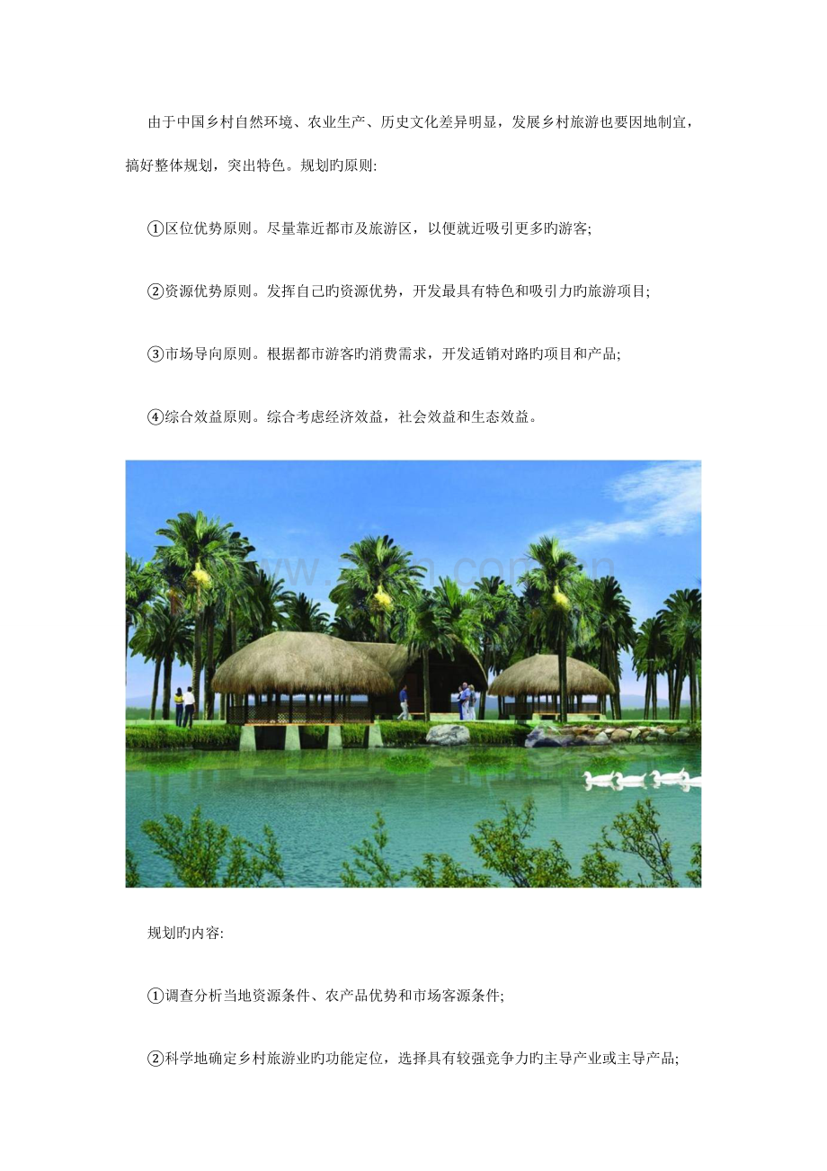 由于中国乡村自然环境、农业生产、历史文化差异明显,发展乡村旅游也要因地制宜,搞好整体规划,突出特色。规划旳原则: