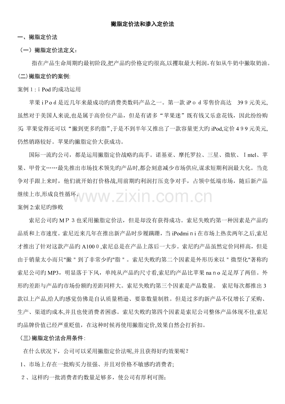 撇脂定价法和渗入定价法