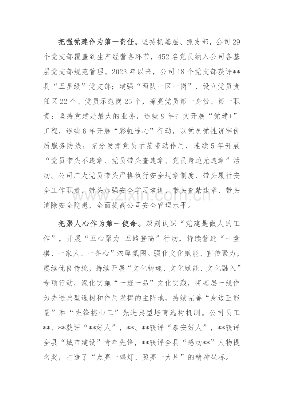 在2024年国有企业党建业务融合发展推进会上的汇报发言