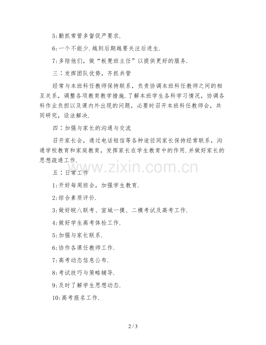 进入高考倒计时阶段,班主任工作重点是抓班风、学风建设,营建一个良好的班级学习氛围和环境,点燃学生最后冲刺的热情与激情.本学期必须做好以下几方面的工作: