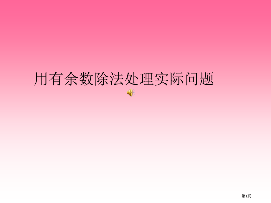 单击此处编辑母版标题样式,单击此处编辑母版文本样式,第二级,第三级,第四级,第五级,*,用有余数除法处理实际问题,第1页,第1页,猜水果小游戏,第2页,第2页,4,5,6,7,8,9,12,15,18,21,10,13,16,19,11,14,17,20,第3页,第3页,(一)看谁口答得又对又快,商几余几?,338,4,1,345,6,4,649,7,1,283,9,1,457,6,3,526,8,4,第4页,第4页,能够分成几组,还多几人?,第5页,第5页,我用口算。,答:能够分成5组,还多2人.,326=,5,(组),2,(人),第6页,第6页,6,2,2 0,3,6,1 8,2,第7页,第7页,练习:,1.,19米,8米,?,第8页,第8页,198=,112=,答:能够做5根短跳绳,还剩1米.,11(米),5(根)1(米),第9页,第9页,2,第10页,第10页,用乘法计算,用有余数除法计算,354,8+1=9(张),答:35只小动物都有座位坐.,49 ,36(只)36 35,8(张),3(只),第11页,第11页,3,第12页,第12页,坐车:,718(辆),租船:,8+1=9(条),答:玩“丛林探险”要坐8辆车,玩“激流勇进”要租9条船。,446,7(辆)2(人),445,8(条)4(人),第13页,第13页,4,第14页,第14页,227=3(束)1(枝),163=5(束)1(枝),102=5(束),第15页,第15页,