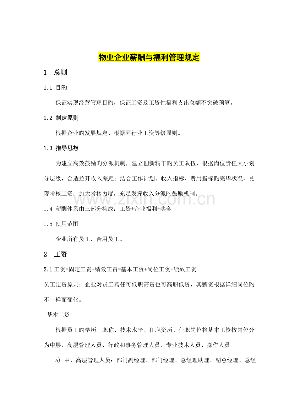 物业企业薪酬与福利管理规定