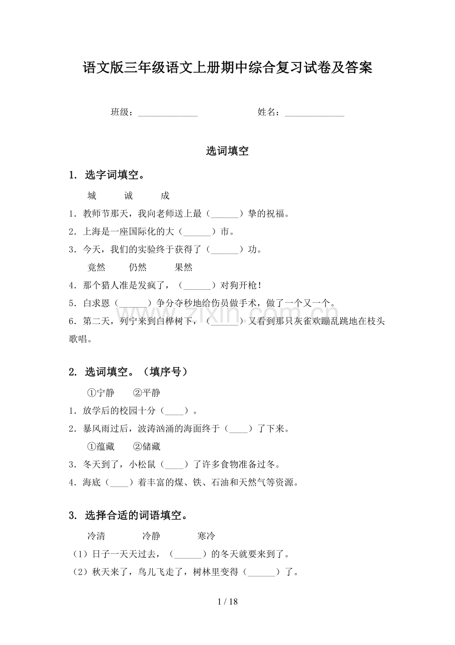 1.教师节那天,我向老师送上最(______)挚的祝福。