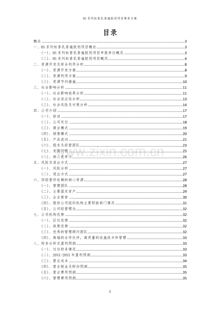 一、HS系列松香乳香施胶剂项目概论 3
