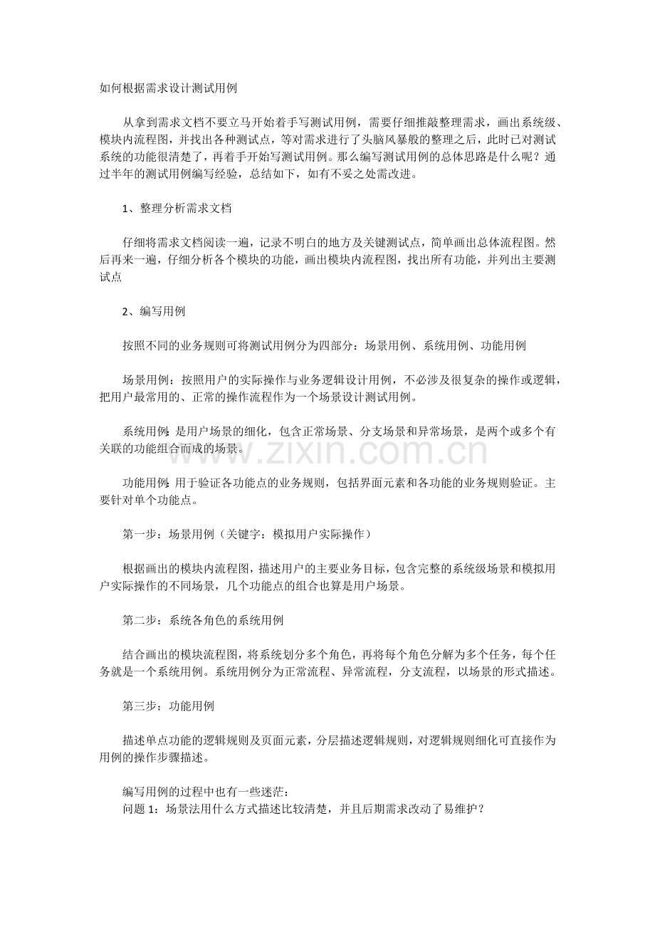 从拿到需求文档不要立马开始着手写测试用例,需要仔细推敲整理需求,画出系统级、模块内流程图,并找出各种测试点,等对需求进行了头脑风暴般的整理之后,此时已对测试系统的功能很清楚了,再着手开始写测试用例。那么编写测试用例的总体思路是什么呢?通过半年的测试用例编写经验,总结如下,如有不妥之处需改进。