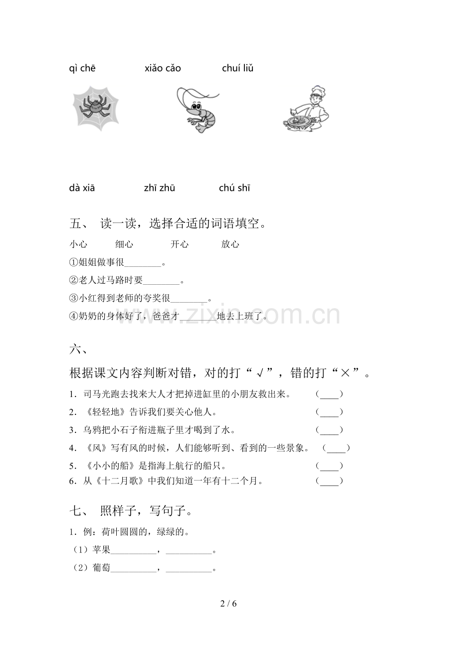 2.《轻轻地》告诉我们要关心他人。 (____)