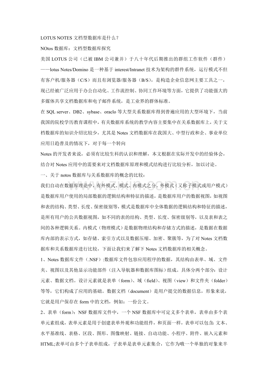 LOTUS NOTES文档型数据库是什么?
