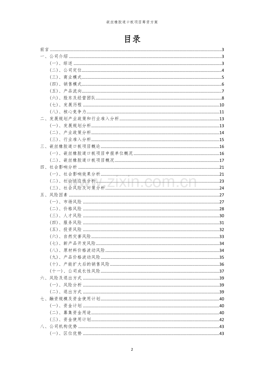 2. 投资经济合理性: 嵌丝橡胶道口板项目的投资合理,符合国家产业发展政策,市场经济要求。其实施有望为投资者带来经济回报。