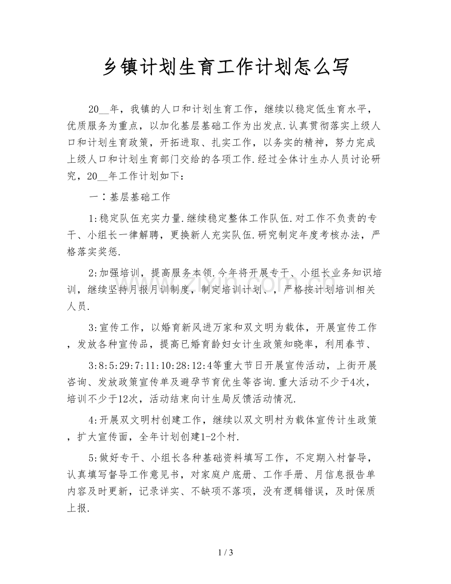 20__年,我镇的人口和计划生育工作,继续以稳定低生育水平,优质服务为重点,以加化基层基础工作为出发点.认真贯彻落实上级人口和计划生育政策,开拓进取、扎实工作,以务实的精神,努力完成上级人口和计划生育部门交给的各项工作.经过全体计生办人员讨论研究,20__年工作计划如下: