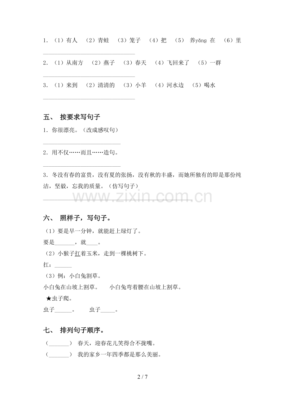 1.①很快地 ②了 ③长出 ④ 白菜 ⑤的 ⑥ 叶子 ⑦绿绿的
