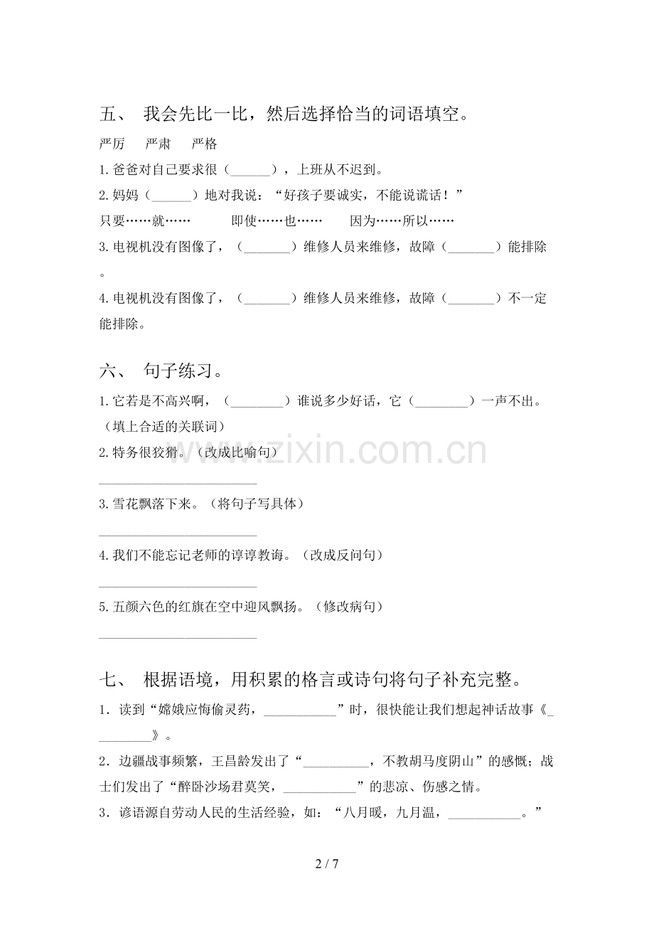 2023年部编版四年级语文下册期末试题带答案【A4打印版】