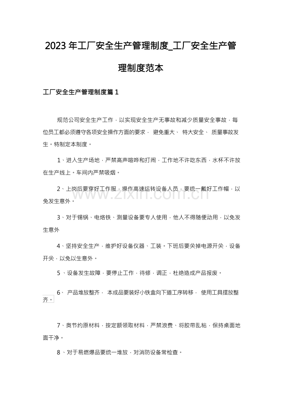 2023 年工厂安全生产管理制度_工厂安全生产管 理制度范本
