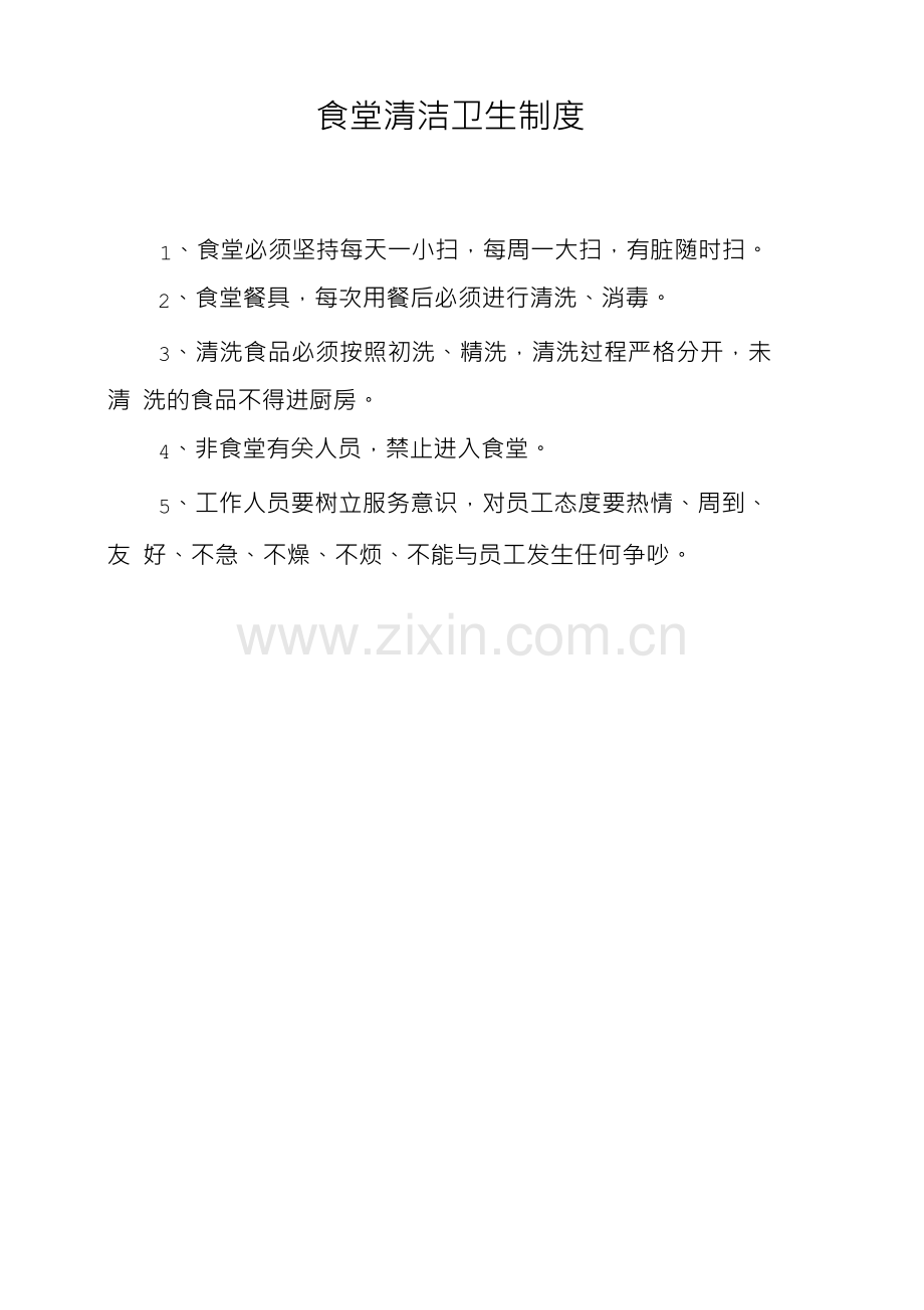 1、食堂必须坚持每天一小扫,每周一大扫,有脏随时扫。