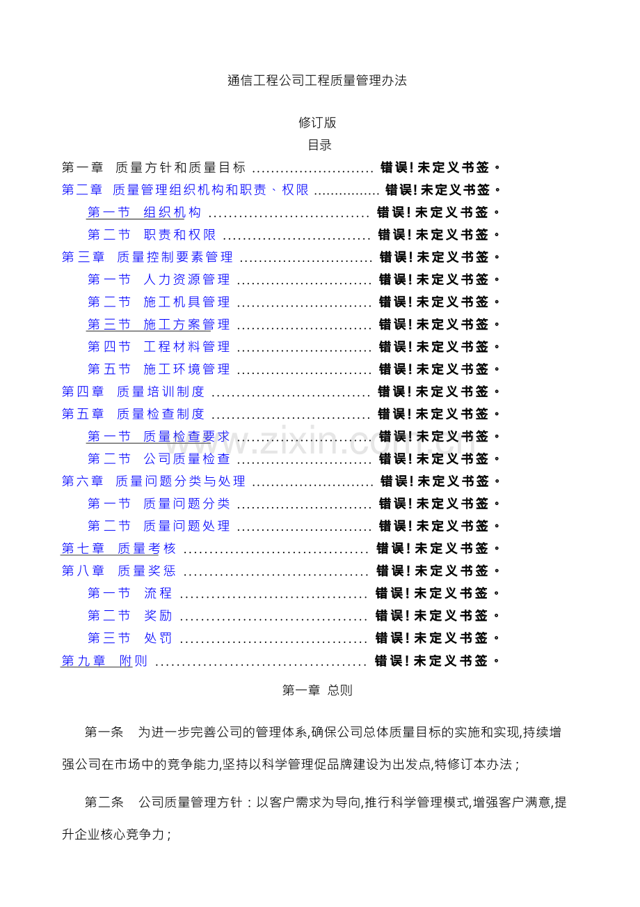 通信工程公司工程质量管理办法