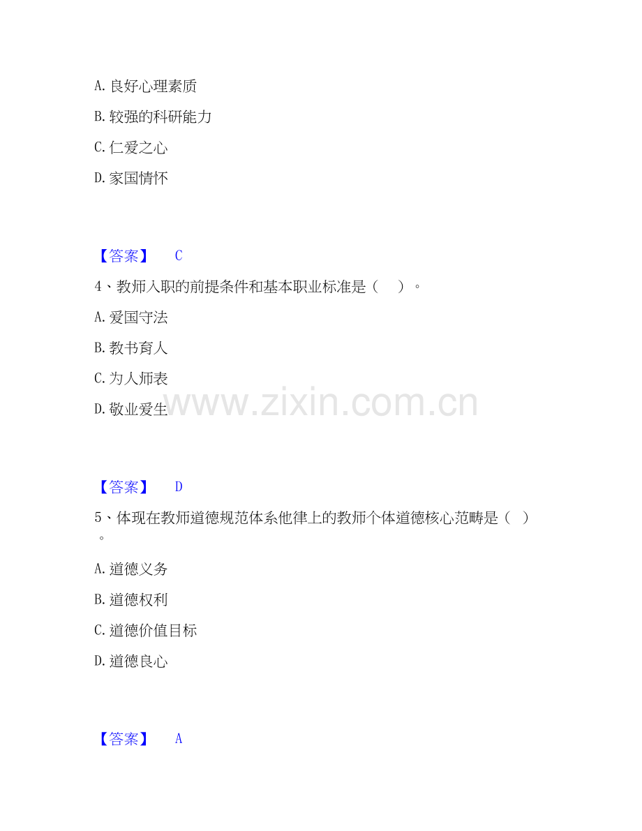 5、体现在教师道德规范体系他律上的教师个体道德核心范畴是( )。