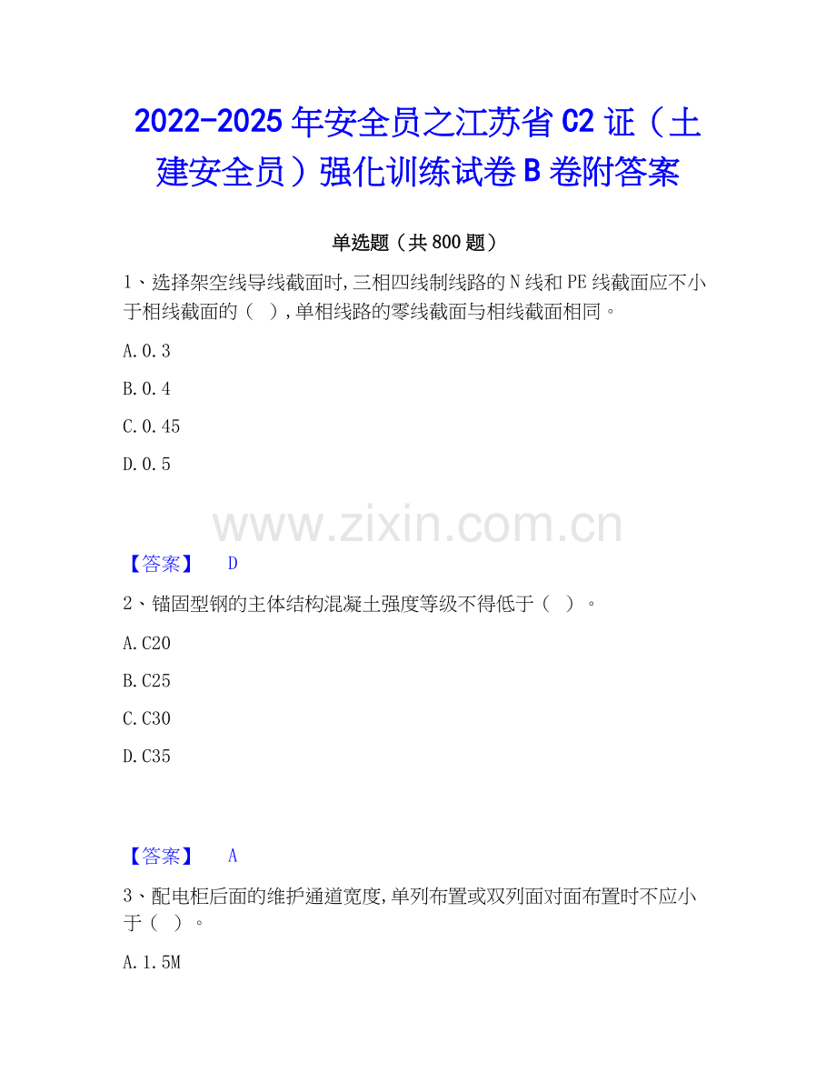 2022-2025年安全员之江苏省C2证(土建安全员)强化训练试卷B卷附答案