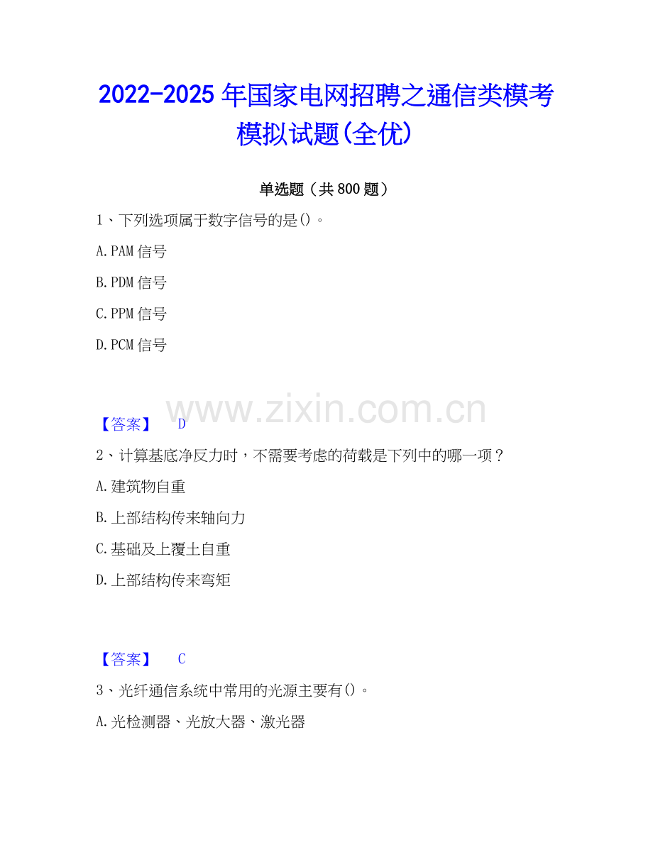 2022-2025年国家电网招聘之通信类模考模拟试题(全优)